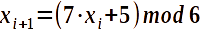 Ermitteln einer Folge von Zufallszahlen bei gegebener Formel nach der linearen Kongruenzmethode.